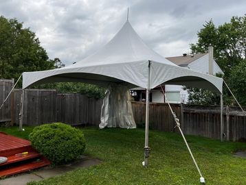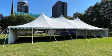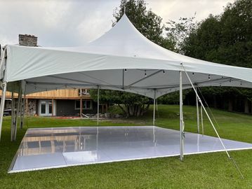 These tents need to be staked in the ground. Please make sure the area you'd like to have it installed can be staked. The price below does not include delivery. It includes set up and tear down. Please contact us with the location of your next event so we can provide you with the right price.